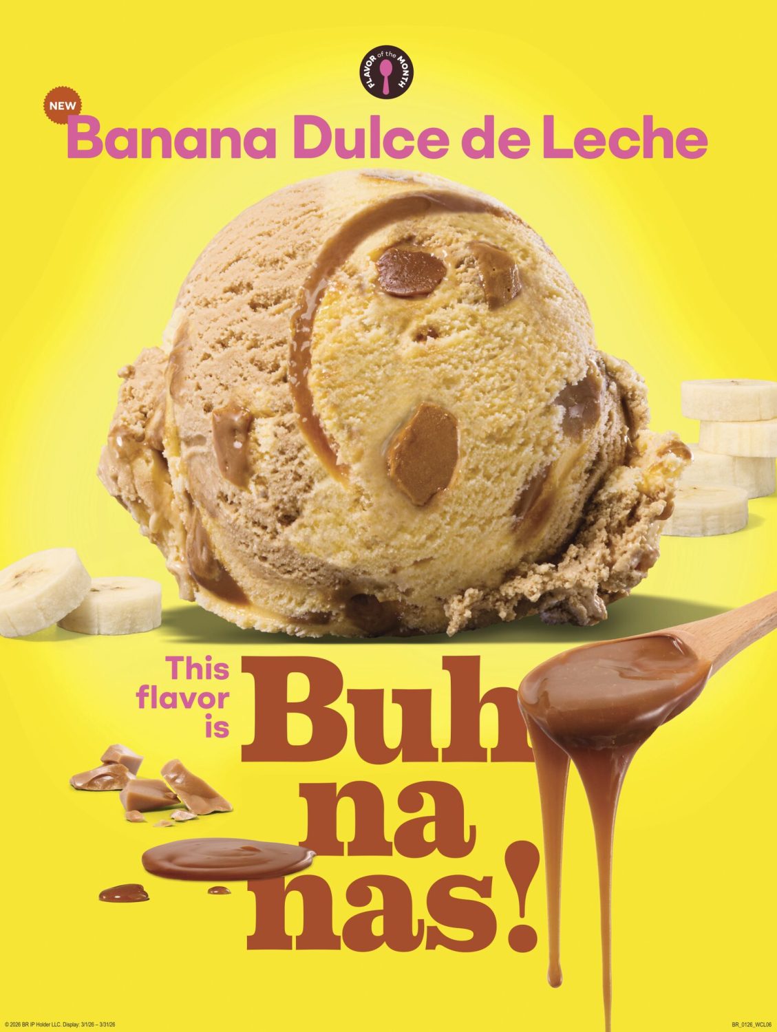This March, Baskin-Robbins is going bananas! The popular ice cream shop is the go-to place for banana lovers in March, thanks to its new flavor of the month – Banana Dulce de Leche – and weekly banana split special.