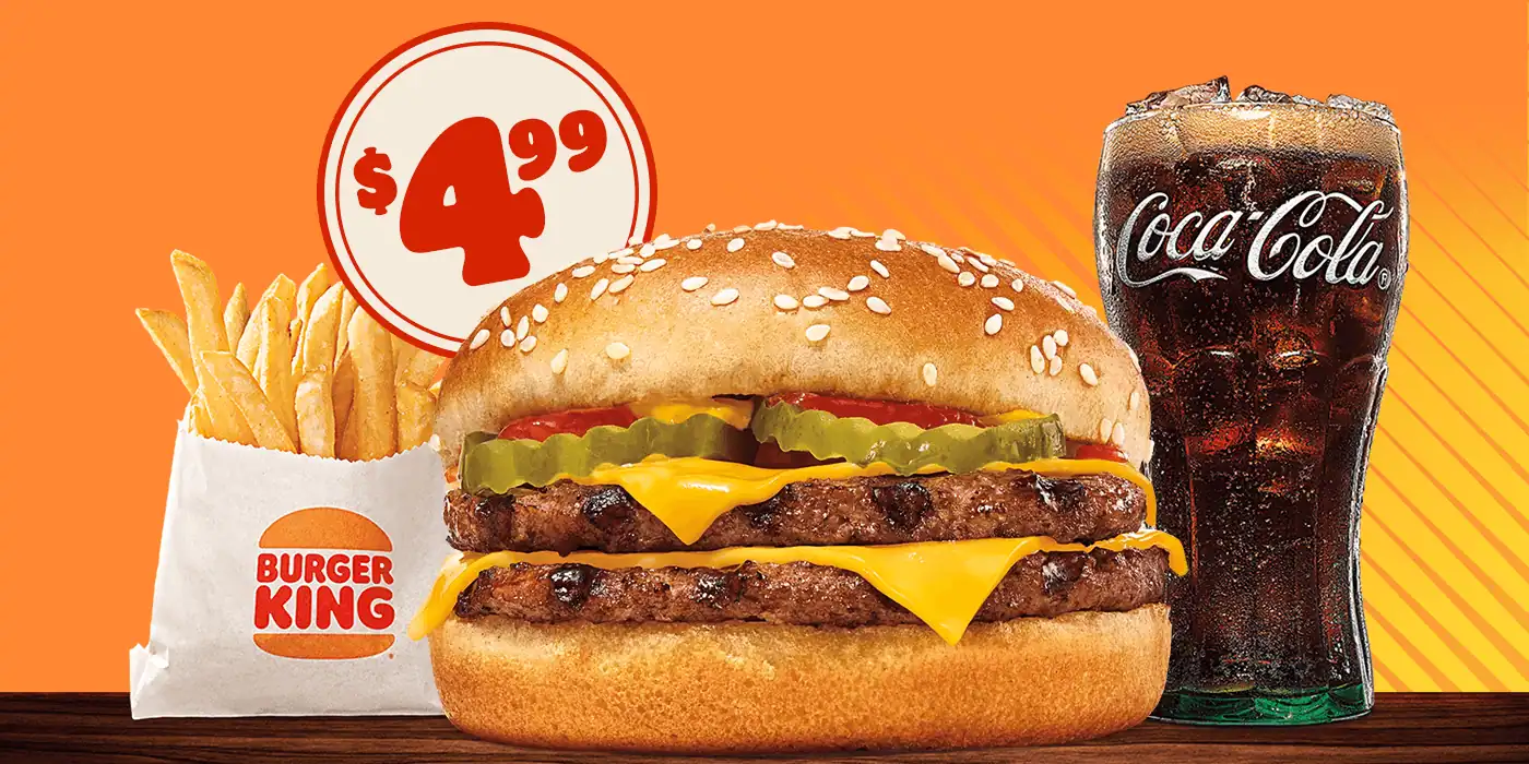 For a limited time, Burger King is offering a $4.99 Double Cheeseburger Meal at participating locations.