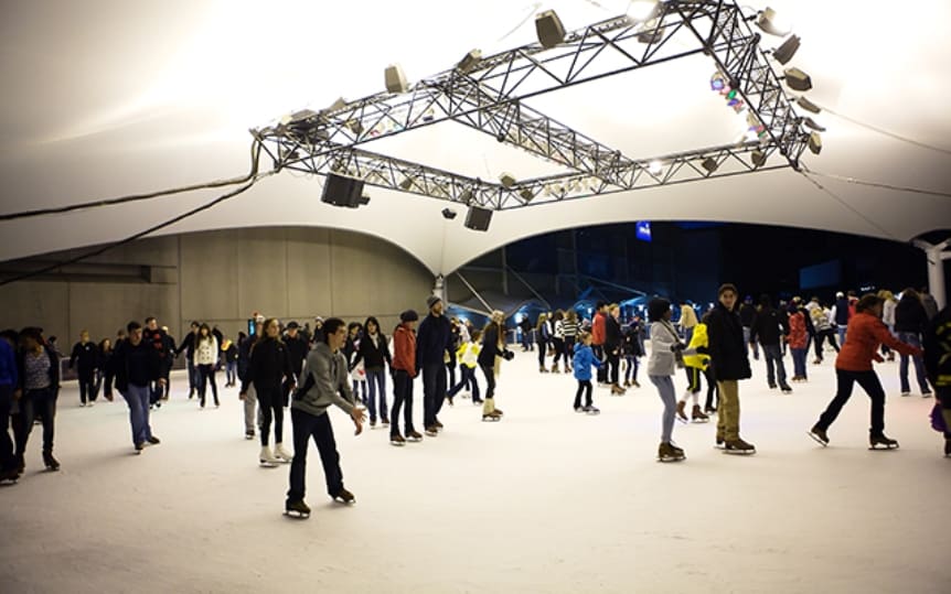 To skate on the rink, there is an admission fee plus a cost for skate rental, unless you bring your own.