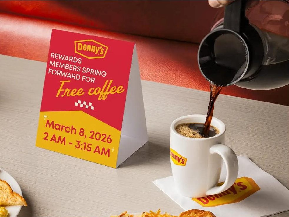 On March 8, 2026, from 2 a.m. to 3:15 a.m. local time, Denny’s is inviting customers to visit Dennys.com/LoseHourGainCoffee to submit their e-mail to receive a coupon for a FREE cup of coffee at participating locations.