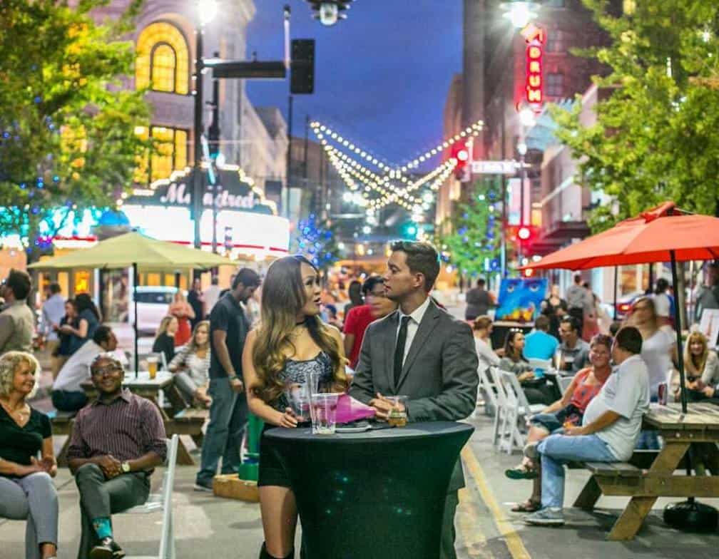 “Urbana KC is a downtown street scene happening on select Sundays throughout the summer. We’ve re-imagined a familiar city block and kept out the cars so you can eat and drink under the stars, hear live music, see public art displays and share a uniquely Kansas City summer experience, all in the heart of the Kansas City Power & Light District neighborhood.”