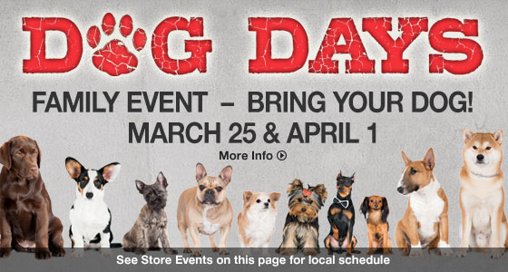 This Saturday and next, March 25 and April 1, 2017, Bass Pro Shops is holding a Dog Days Family Event. Admission is free. Dogs are welcome, but they need to be up-to-date on all vaccines, pet and child-friendly, and on a close leash at all times.