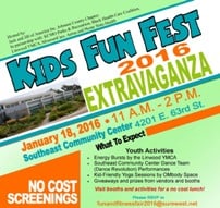 On Monday, January 18, 2016, the Southwest Community Center is holding a Kids’ Fun Fest Extravaganza. Admission is free. RSVP is requested funandfitnessfair2016@surewest.net.
