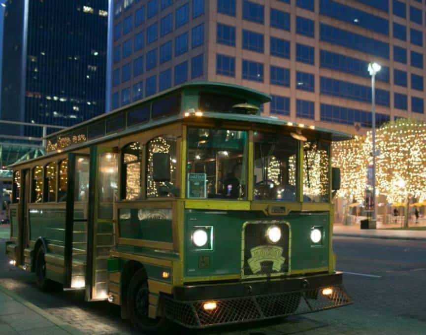 On Saturdays through December 23, 2017, the Downtown Dazzle Holiday Trolleys will be giving FREE scenic holiday trolley rides down Grand Boulevard in downtown Kansas City. The trolleys will go back and forth between Crown Center and the Kansas City Power & Light District.