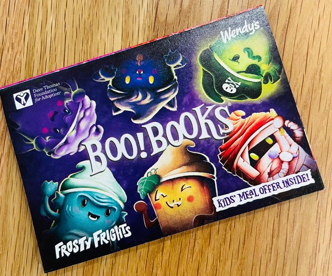 The books can be purchased in-restaurant and at the drive-thru, as well as via the Wendy’s app — just add a Boo! Book to your order from the “Give Something Back” category.